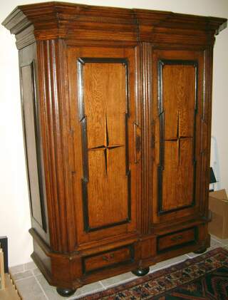 Eikenhouten, antieke kast München, Duitsland Louis 14, circa 1700 hoogte 214 cm,breedte 170 cm ,diepte 70 cm