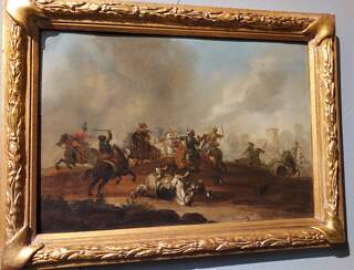 Antiek schilderij: ,,Slagveld, 18e eeuw''