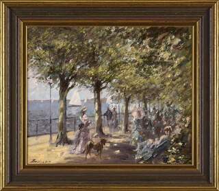 Home›Antieke schilderijen›20e eeuwse schilderijen›Antiek schilderij: ‘Aan het Starnberger meer’ in Beieren' Hans Becker